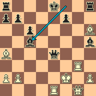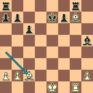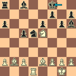 Bílý bral na f6 a černému nezbývá než dobrat pěšcem. Ale proč si nejdřív nesebrat pěšáčka se šachem? 1. … Sxh2+?? 2. Kh1 gxf6?! 3. g3! A je to! Po 3. … Sxg3 vyhrává 4. fxg3 i 4. Vg1. 1:0