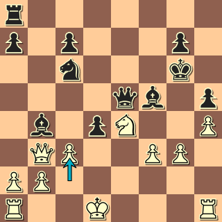 Bílý plní černému všechny touhy – otevírá na sebe sebevražedně sloupec. 22. … dxc3 23. bxc3 Vd8+ 24. Kc1 Vd3! 25. Ve1 Sxe4 Na rozboru přišla řeč na drtivé 25. … Vxc3+!. 26. Vxe4 Vxc3+