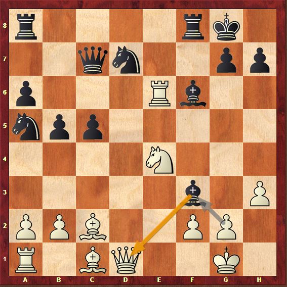 V této pozici už Verča stojí přepychově a je tam už celkem rychlá výhra (BNT) 20. Dxf3 Sxb2 21. Dh5 Sxc1