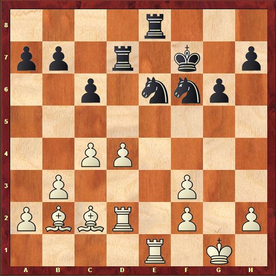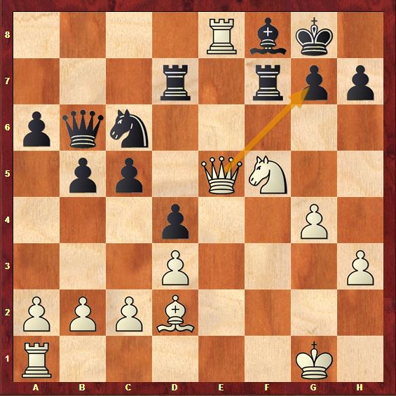 Bohužel se teď rozhodla dobrat střelce (Vxc1) místo vyhrávajícího Jg5! a dál 22. …Jf6 23. Sxh7 Kh8 24. Vxf6 Vxf6 25.Sg6+ Kg8, ale to bylo celkem těžké už dopočítat