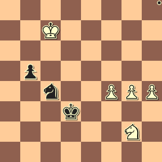 69. b6?? není ten tah, který hledal. Správné je jít vpřed pěšcem na a či c sloupci. Třeba 69. a6+ Ka8 70. b7+ Kxa7 71. Jc5 a konec. Bílý obětuje pěšce za tempo, to mu teď bude chybět. Jenže místo správného 69. … Je5 vedoucího do remízy po 70. c7+ Kxc7 71.Jd6 Kb8=, přišlo 69. … Ja5?? další minela, oplácí 70. Jc5?? Poslední možností, jak vyhrát bylo 70. c7+ Kxc7 71. Jf6! Jc6 72. Jd7 a černý je vytempován 🙂 70 … Jxc6 71. Kf4 Ka7 jediné ale postačující 72. Ke4 Jb8 půl. Jeden z kolegů soupeře zkonstatoval, že tenhle výsledek se dal očekávat hned od začátku, když jsem předchozích pět partií remizoval. Tentokrát byli soupeři lepší a zaslouženě jsme prohráli 1:3.
