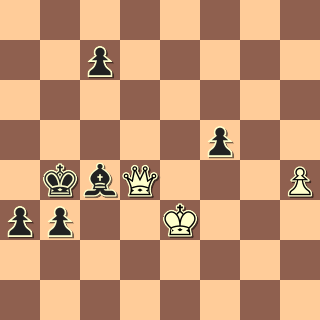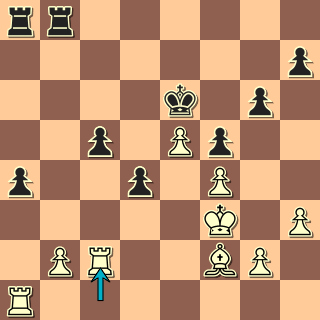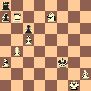 34. Dxf7? Ne-li zbabělost, pak aspoň respekt. S ubývajícím časem jako bych se zalekl možnosti „vyhrát na celé čáře“ po Dxb6 a směřuju do koncovky, kde to přece musí být bez rizika. No, nebylo. 34. … Kxf7 35. Sh4 No co, dojdeme střelcem a králem blíž k pěšcům, aby se nám nerozpochodovali, a pak uvidíme. 35. … b5 36. Kf2 b4 37. Kf3 Ke6 38. Sf2 Veb8 39. h3? Že bychom to rozbalili na královském křídle? 39. … b3 Nerozbalili. 40. Vec1? bxc2 41. Vxc2??