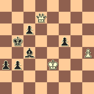 Situace černého je tristní. Na vzdání je však vždycky dost času. 1. … Vd8! 2. h4?? Bílý se osudně domníval, že není třeba se zamyslet. Hned po partii ukázal studiové  2. Jd5!! 2. … Vd1+ 3. Kh2 Vd2+ 4. Kh3 Vd1! Aha! 1/2 Pohříchu jen čestný úspěch při debaklu 0,5:5,5.
