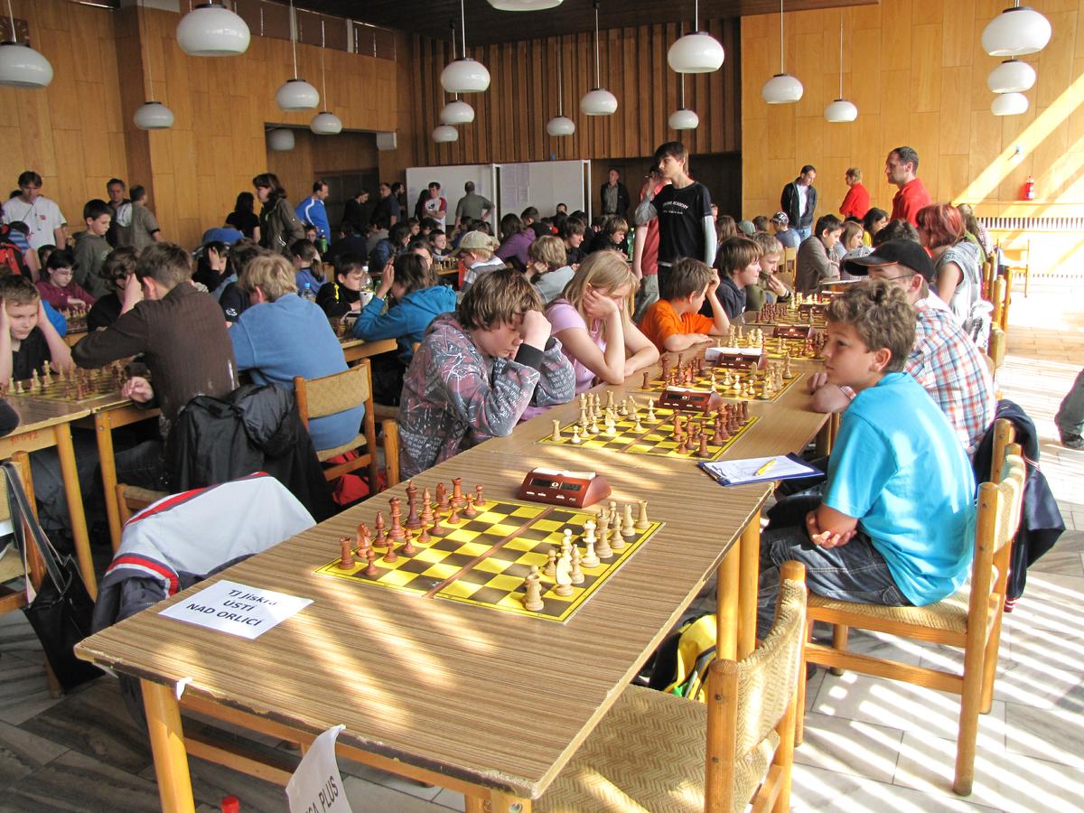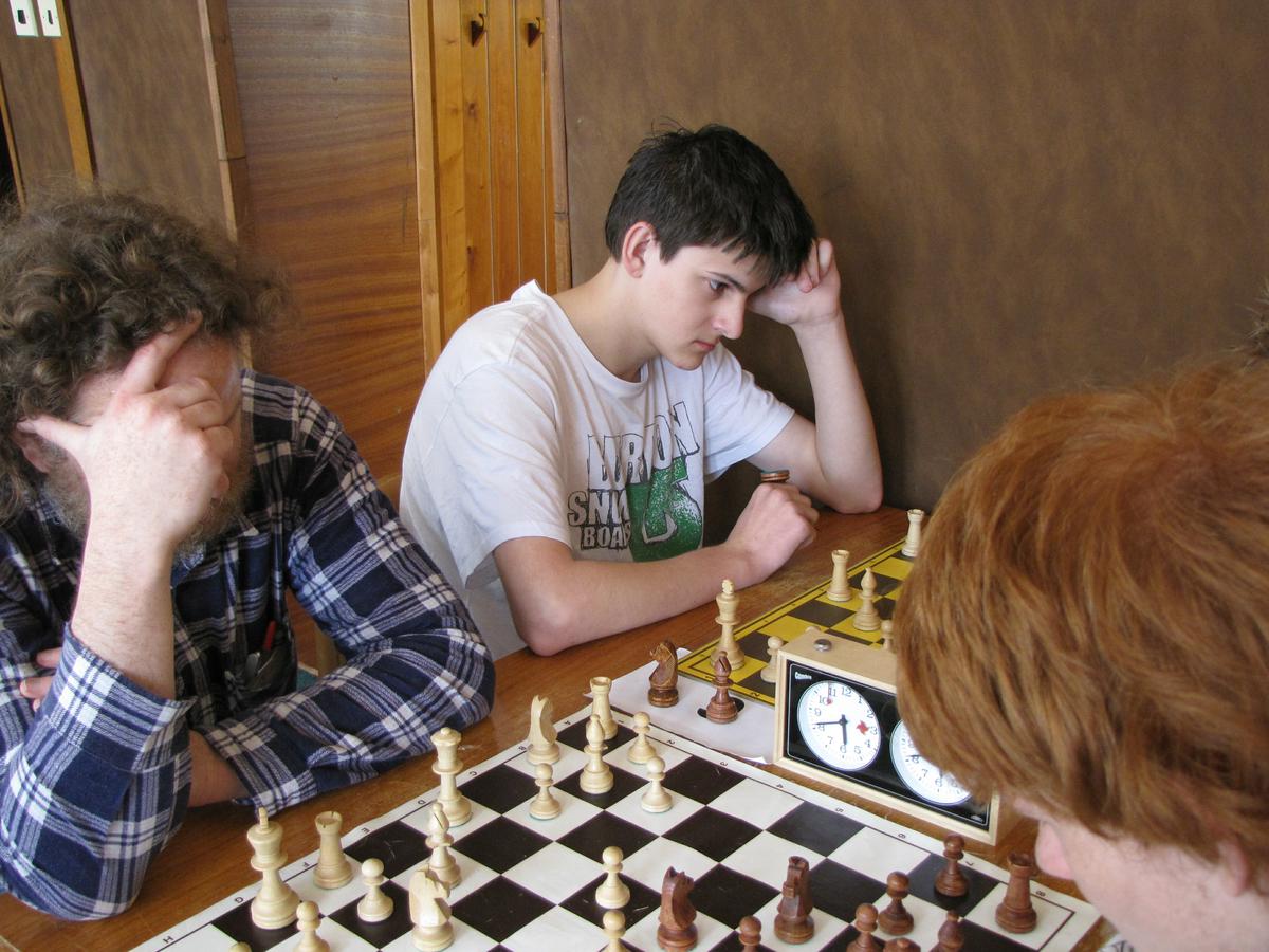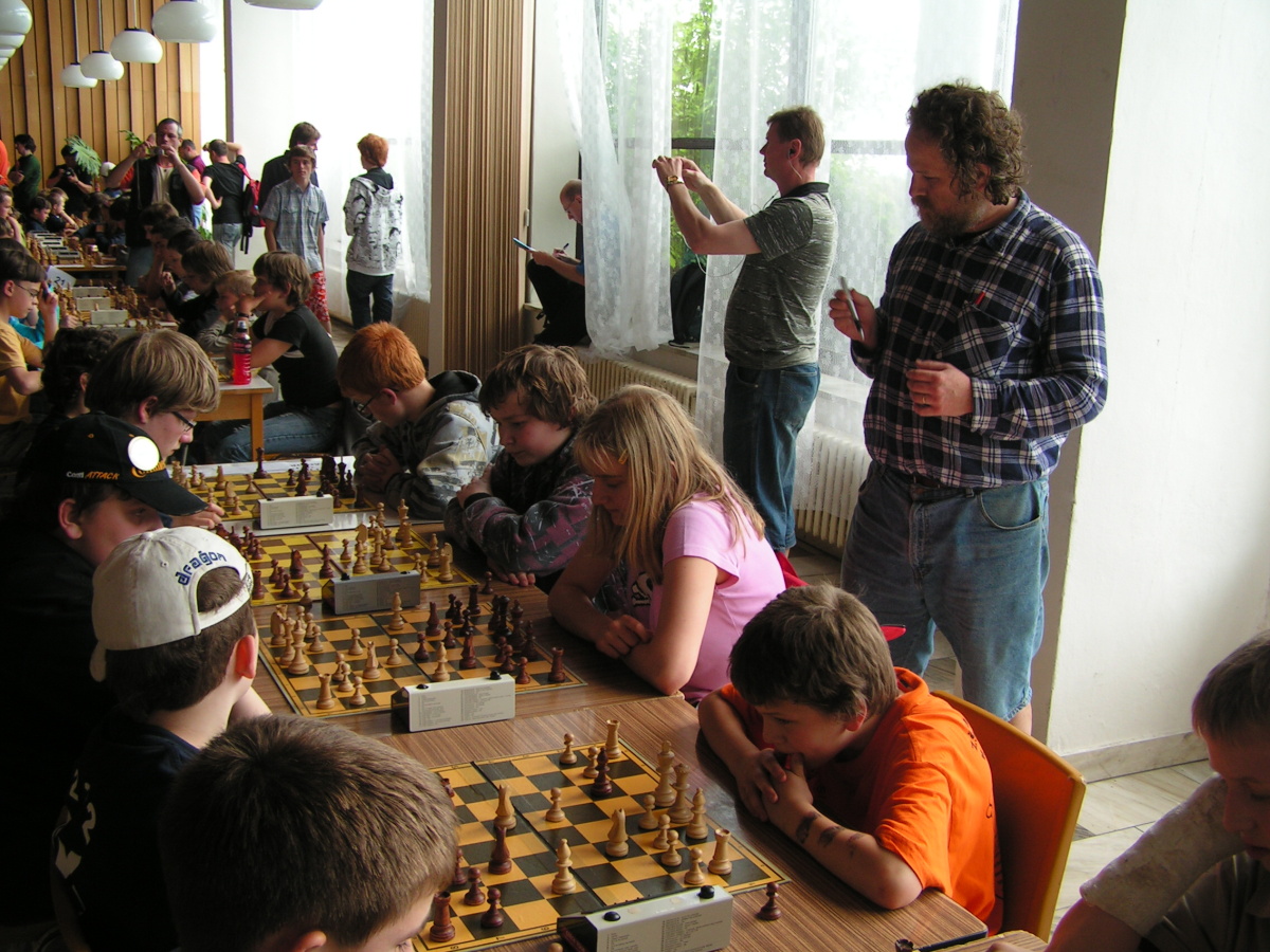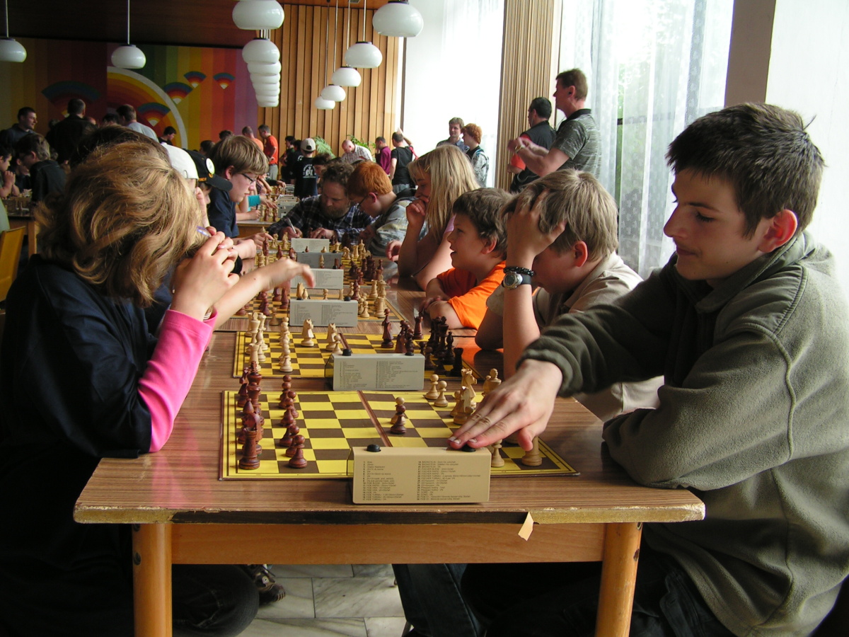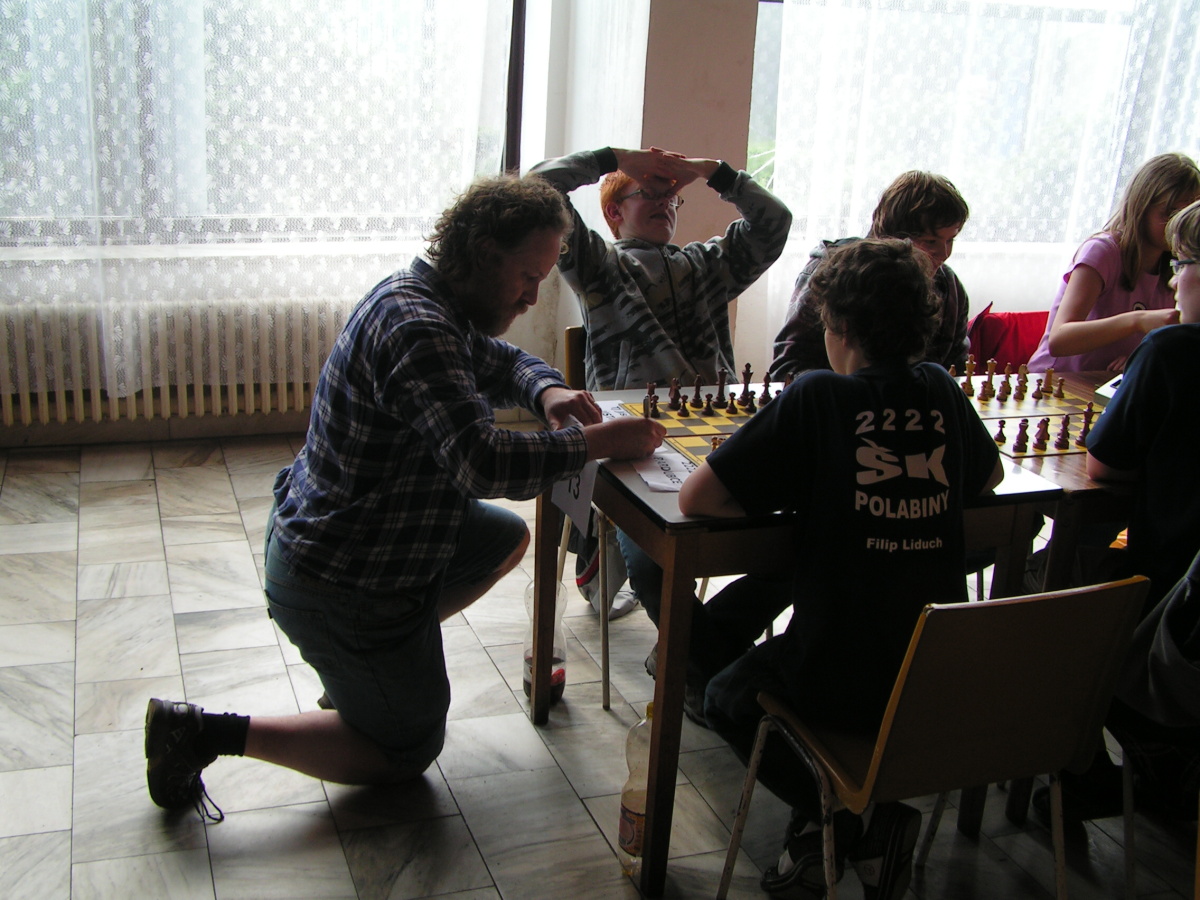 Protože jsem hrál přidružený turnaj jednotlivců a protože se už pár let nezapisuje, nemám téměř žádné šachové poznatky, rozborů vás tedy celkem ušetřím. Většinou jsem z partií viděl jen pár tahů zahájení a s vidinou hrozících katastrof jsem odběhl odehrát svou dvacetiminutovku, abych po návratu spatřil srovnané figurky u dvojic a občas pár nervydrásajících koncovek u družstva.