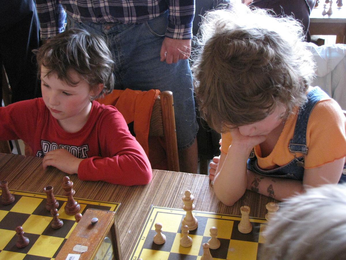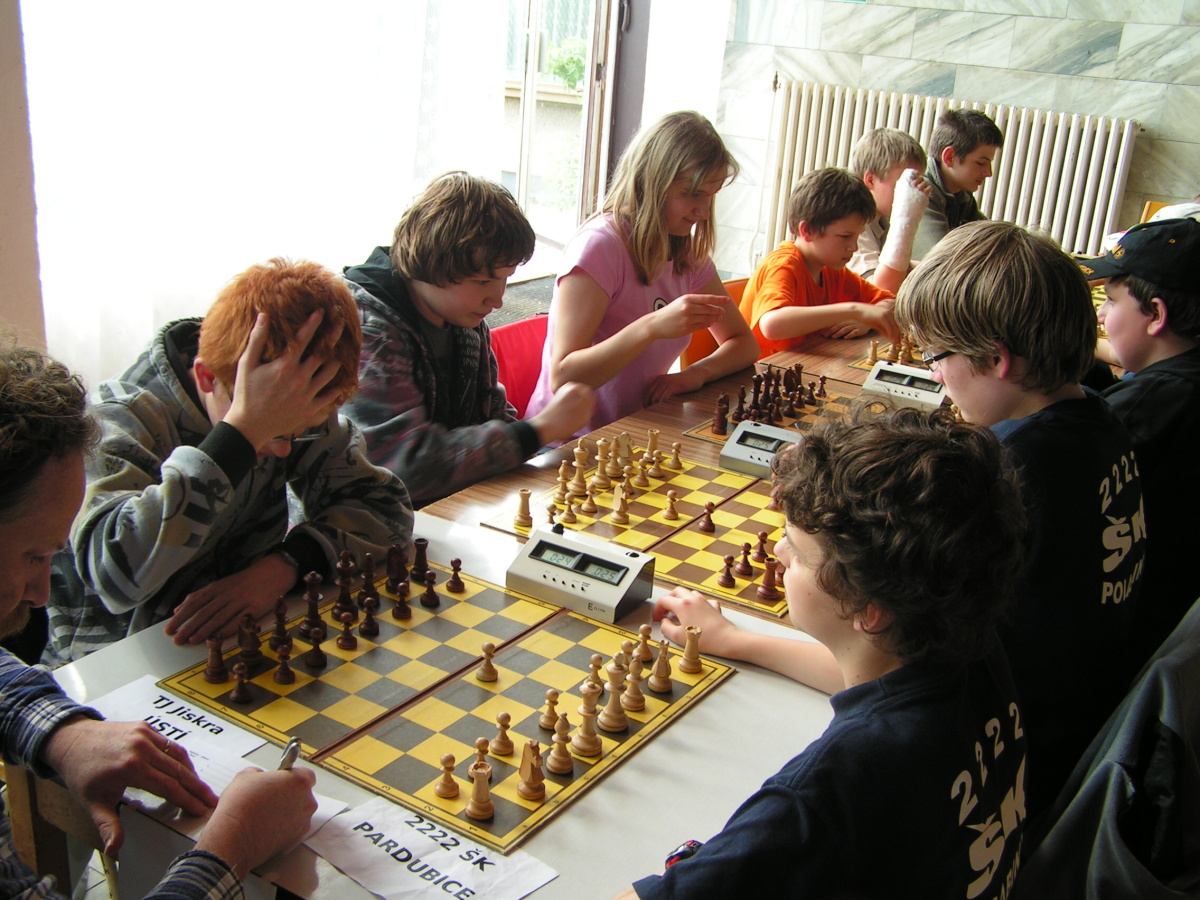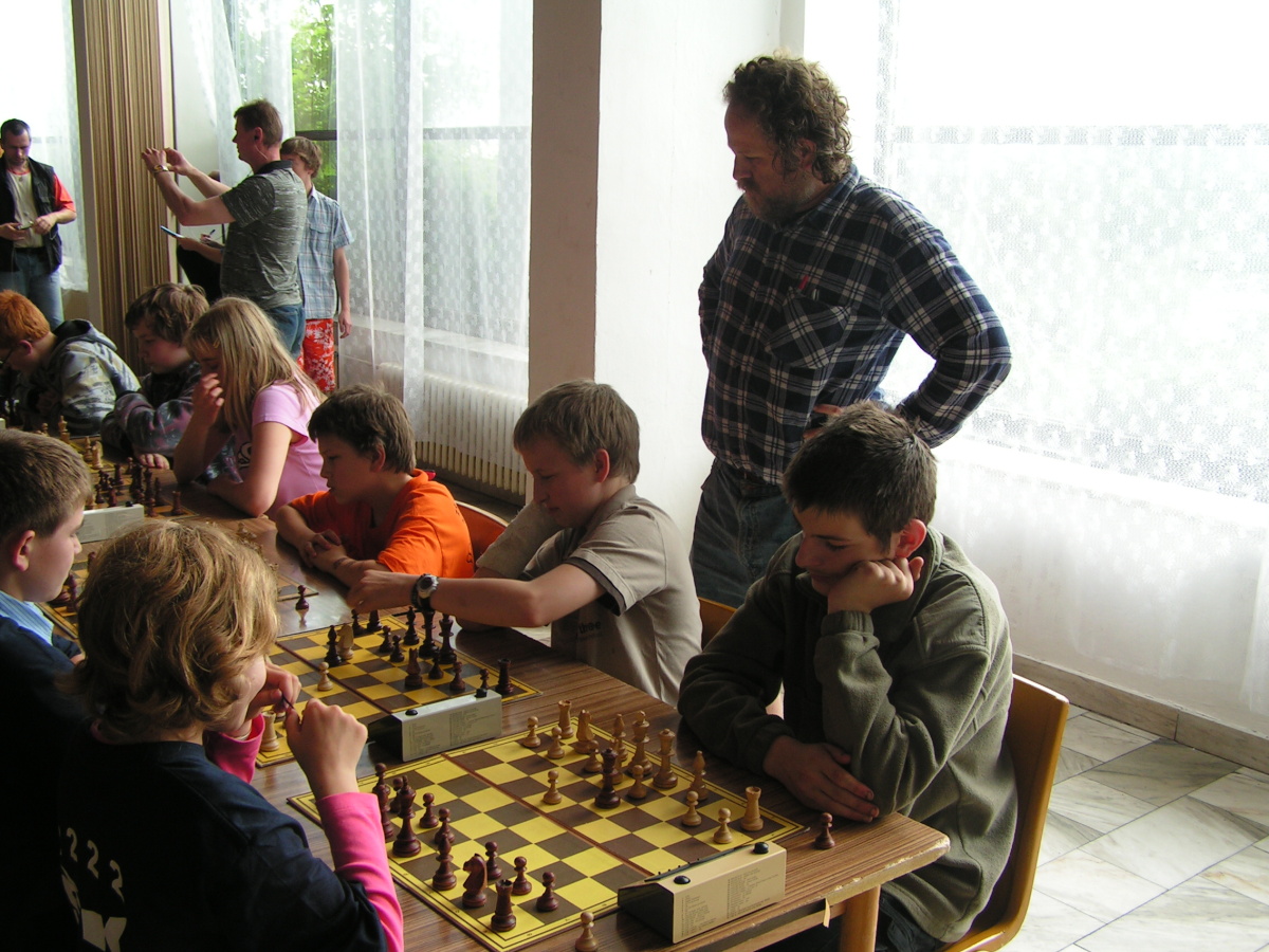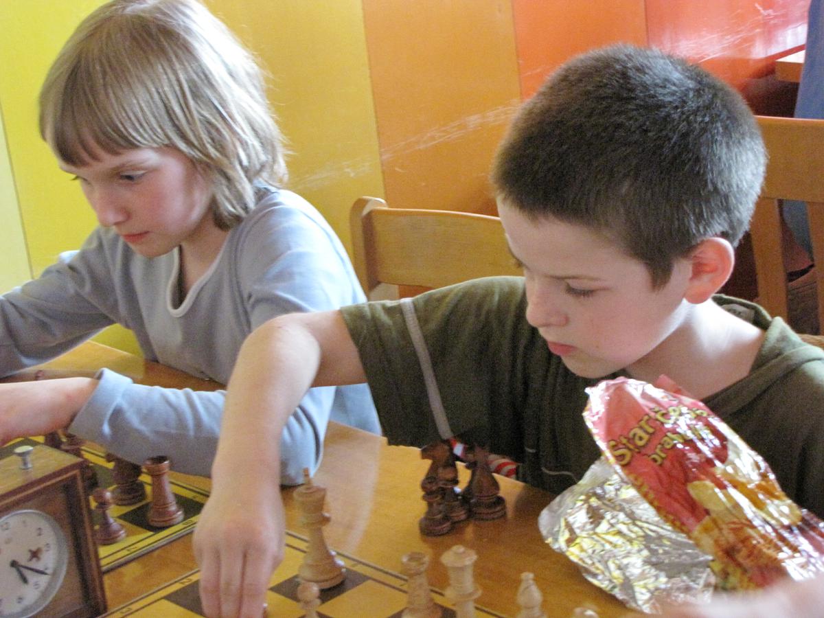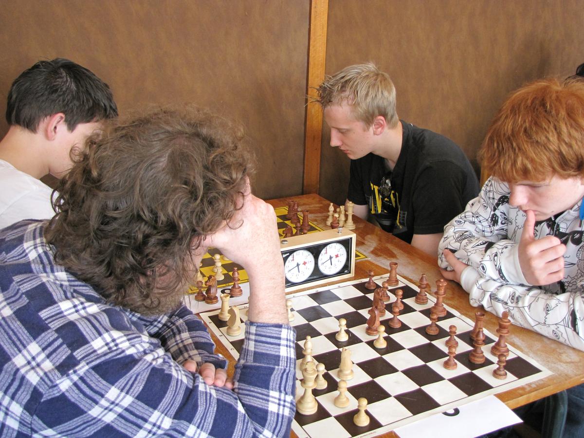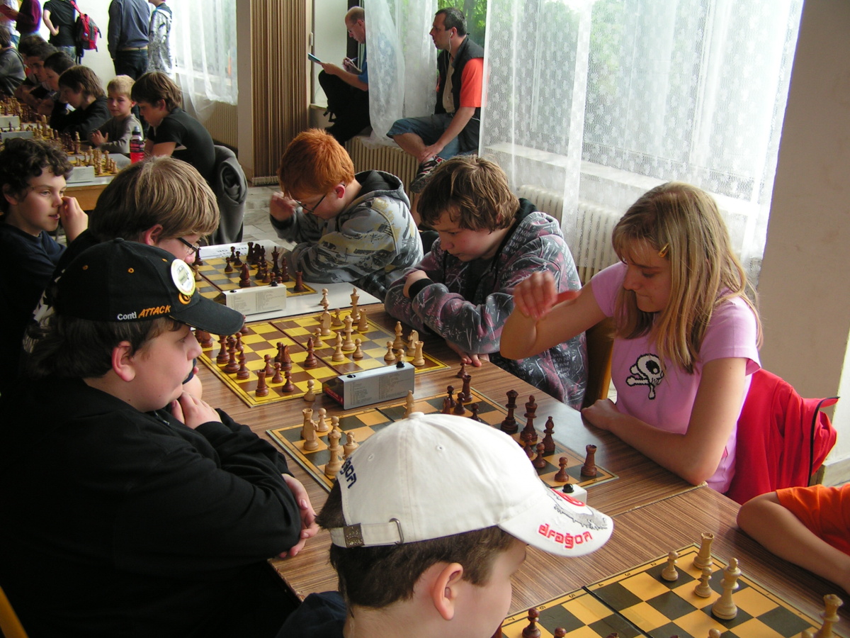 Protože jsem hrál přidružený turnaj jednotlivců a protože se už pár let nezapisuje, nemám téměř žádné šachové poznatky, rozborů vás tedy celkem ušetřím. Většinou jsem z partií viděl jen pár tahů zahájení a s vidinou hrozících katastrof jsem odběhl odehrát svou dvacetiminutovku, abych po návratu spatřil srovnané figurky u dvojic a občas pár nervydrásajících koncovek u družstva.