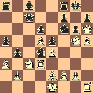 Co si počít s napadeným jezdcem c3? Zahrál jsem tu spokojeně 19. Vg3!! a soupeř, jak jsem čekal, neohroženě kontroval 19. … Sf5!! Inu, obvyklá bahenní lázeň. Slavnostně prohlašuji, že toužím hrát klidné poziční šachy. Ono se to tam vždycky nějak udělá samo …
