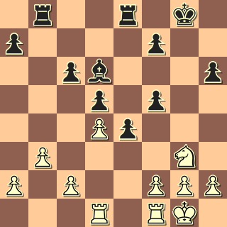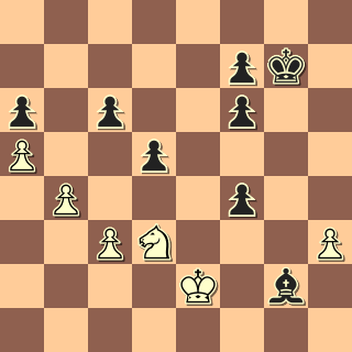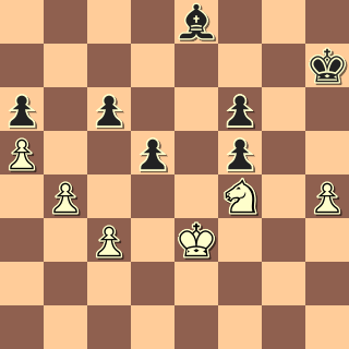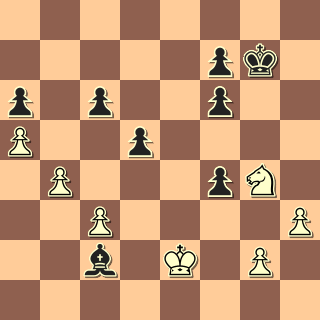 Bílý tedy odevzdal dva pěšce. Tolik to nevadí, protože na f sloupci je trojpěšec a naopak pc2 byl zbytečný. Ve vzniklé pozici je i nadále volný h pěšec a jezdec je sympatičtější než střelec. Bílému však chybějí oporné body v centru: kdyby pronikl králem a jezdcem na d4 a podobná černá pole, bylo by to veselejší. Ale kudy?