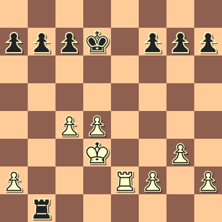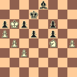 Těžko říct, která chyba černého byla rozhodující. Nějak sám vyklidil pole a bílý snadno vyhraje. Cesta krále na dámské křídlo slibuje masakr. 44. … Kg7 45.Kd4 Kf8 46.Kc5 Ke7 47.Kb6 Kd7