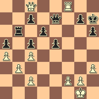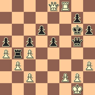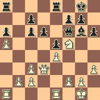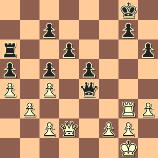 Opět hra čtyř jezdců v nepříliš náročném podání. Figurky se měnily, příliš plánovité hry k vidění nebylo. Černý tu musí vykrývat nějaké možnosti vniku, ale to se mu celkem daří. Nadvláda v centru kompenzuje slabinu na a5. Teď musí zabránit možnosti 32. Dxh6, např. tahem 31. … Kh7. Černý ale udělal jedinou – a osudnou – chybu: 31. … Df4? Tím otevřel skulinku na d5 a bílé figury rázem proniknou do černé pozice. 32.Dd5+ Df7 33.Db7 Vb6 34.Dc8+ Kh7 35.Vf3 De7 36.Vf8