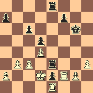 32. Kd3?? Těžko pochopitelný kolaps. 32. … Va1 33.Ke4 Vxa3 34. d5?? Ono mu to nestačilo?! Va4+ 35. Ke5 f6+ 36. Kf5 cxd5 Druhý pěšec je doma. 37. Vb2 Va6 38. g4? Pokus o pomocný mat? 38. … Ke7 (38. … b5! 39. Vxb5?? g6 mat) 39.g5 fxg5?! (39. … f5 + a bílý na královském křídle dohrál.) 40.fxg5 Kd6