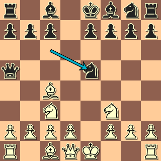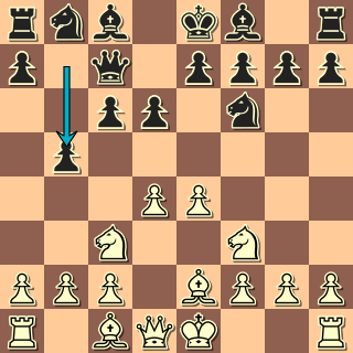 Takže celkem typická pozice s náskokem bílého ve vývinu a pozicí bez slabin u černého, který se pokusí postupně vyrovnat hru. 8. … c6 9. d3 Sg4+ 10. f3 Sf5 11. Vhe1 e6 12. Sf4 0-0-0
