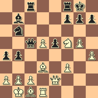 Pak v naprosto úděsné partii otáčím pozici já… soupeř hrál sicilku s nebývalým citem, asi neúmyslně se pořadím tahů vyhnul mým oblíbeným schématům a v nastalé pozici (Najdorf, bílý reagoval anglickým útokem) mě ukázkově přehrál. Asi proto, že ušetřil tempo na rošádě, zatímco zuřivý reportér k 0-0-0 přidal ještě profilaxi Kb1. Pozice na odpis, ještě k tomu o tři čtvrtě hodiny horší čas, mělo to být 0-1. Jenže na světě existuje něco, čemu se říká oustecká škola mlžení. Úmyslně jsem v přiřachlé pozici na třech minutách (16 tahů do kontroly) nechal stát kvalitu, soupeř místo zesilování pozice a matového útoku volil taktiku „na dřevo“ a šeredně se spletl. Po chybném dobrání na d5 se bílé figury jako mávnutím kouzelného proutku rozehrály a vytvořily hrozby matové i „na dřevo“. Soupeř téměř dorovnal čas, ještě zkusil šejdit, ale místo na b2 by se konal mat na h7.