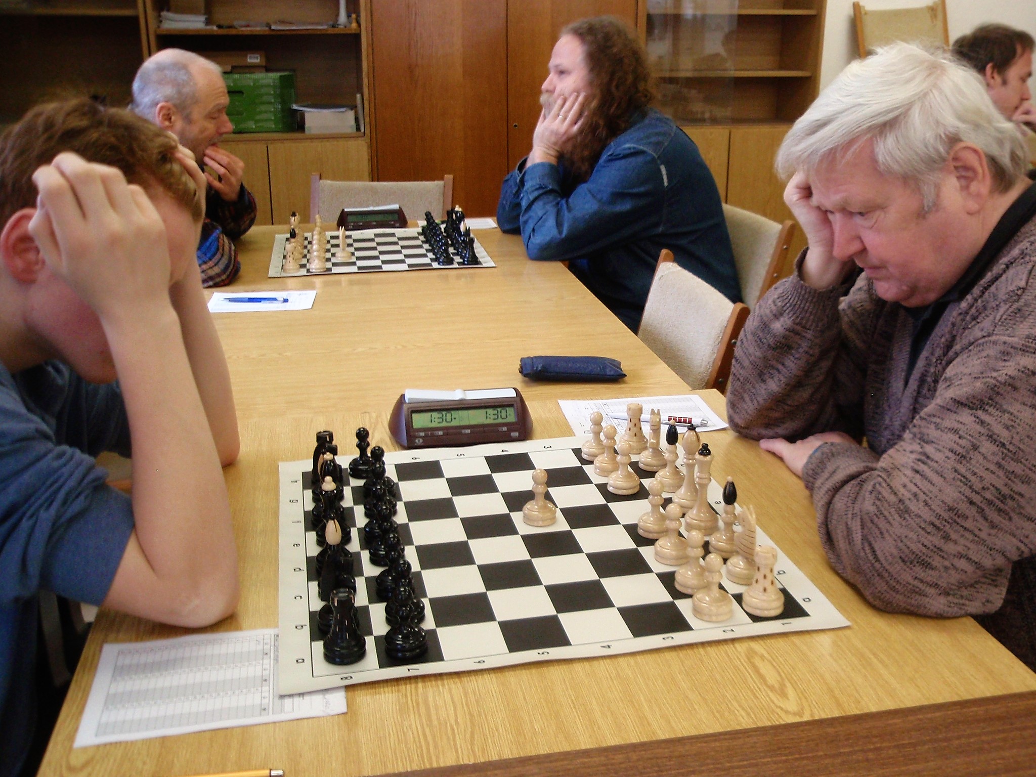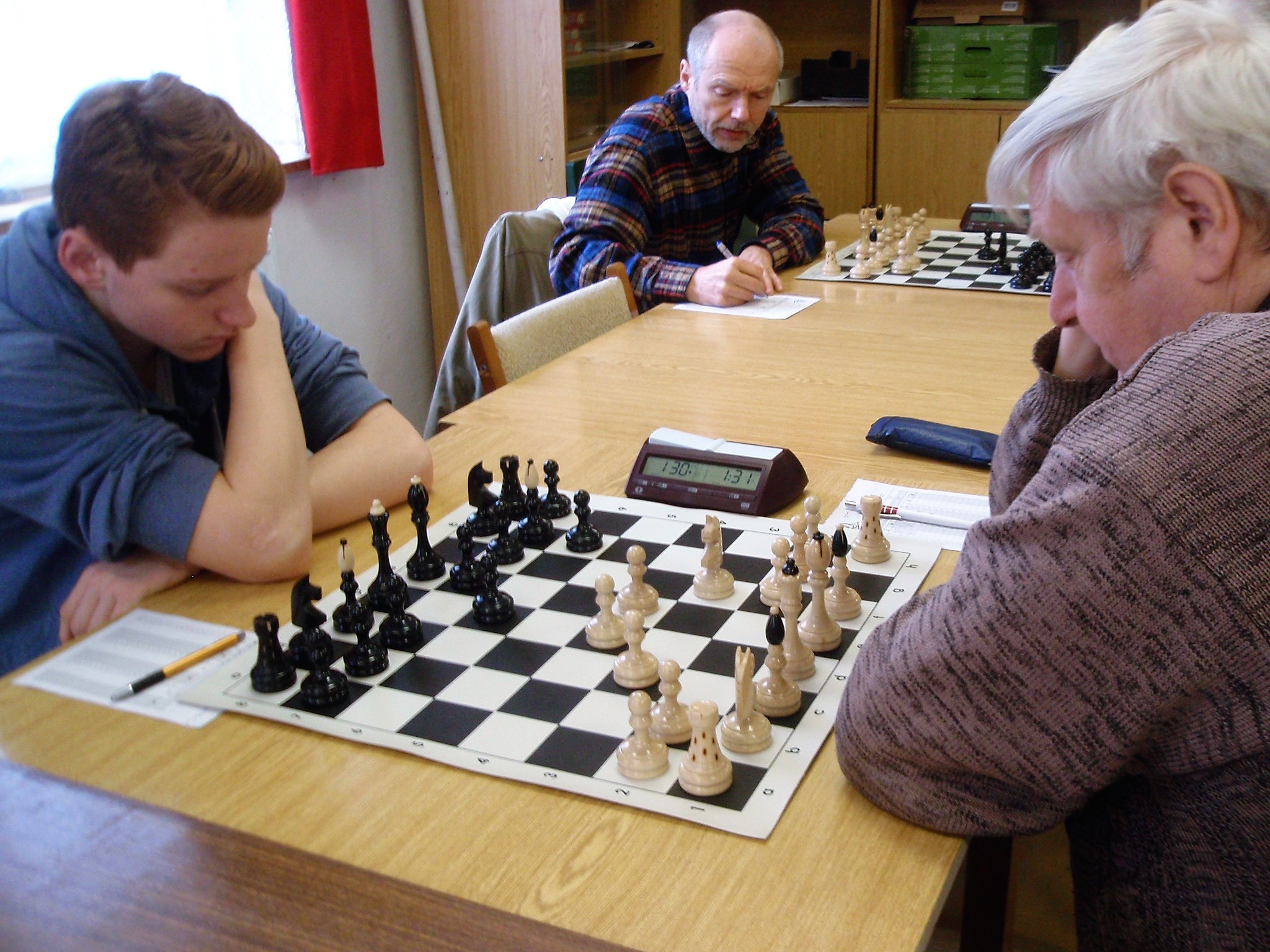 Skóre se začíná rodit smířlivě, Petr Mareš s Jirkou Dosedělem remíza (my bílé, soupeř +100 ELO), takže v pořádku. Petr Jániš to taky nehrotí, tady je to pro nás dokonce malinko příznivější (my černé, soupeř +necelých 100 ELO). Bohužel pak nastává první havárka, Jarda Volf tak dlouho utahoval šrouby a posiloval centrum, až se mu po nesložité kombinaci rozsypalo. Junior Nešpor se nelekl, dokonce přešel do věžovky (s Volfem!), a když už bílému teklo do bot, spadl na čas. Jak vidno, bílé figury a 200 bodů k dobru nemusí nic znamenat. Litomyšl vede!