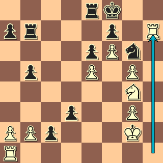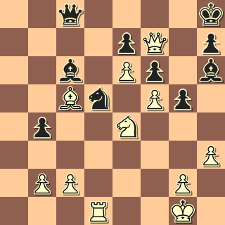 Po divokém průběhu vznikla tahle pozice a černý mohl otevřít králi ústupovou dráhu tahem 30. … Vd8 nebo 30. … Vc8. Blicnul však lákavé 30. … d2? a rázem je všechno jinak, ani nová dáma černého nezachrání, bílé figury ho teď dostanou. 31. Vah1 Kg8 32. Vg7+ Kf8