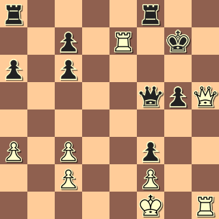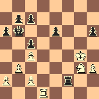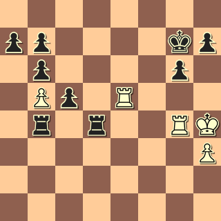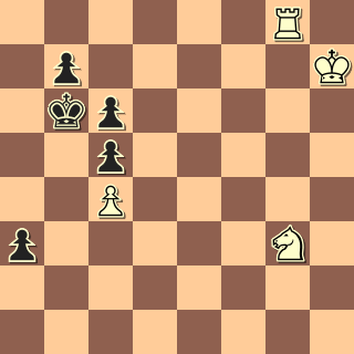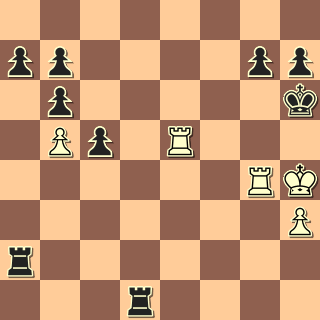 se situace vyostřila. 30. Ve1 Vxc2 31. Vxe6+ c6? (Ka5!) 32. Vxh6 Vxa2 33. Vg6 Va3 34. h4 Vxb3 35. h5 Ve3 36. h6 Ve8 37. h7 Vh8 38. Vg7 a5 39. Kh5 a4 40. Kh6 a3 41. Vg8 Vxh7 42. Kxh7