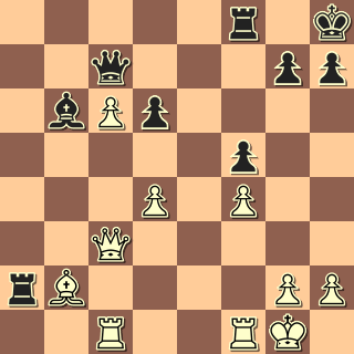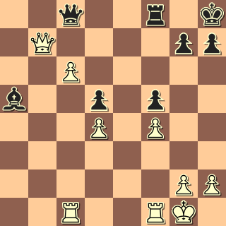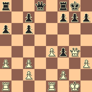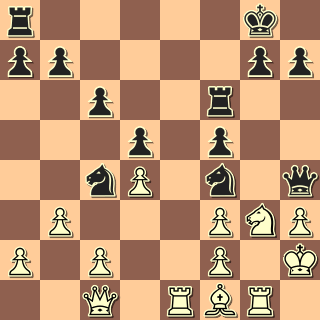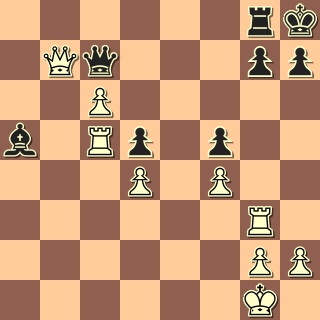 Pěšce jsme ztratili, můžeme mlžit. 24. … Sa5? Ne však takto. 25. Db3 A pyšná věž nemá ústup. 25. … Vxb2 26. Dxb2 d5 27. Db7 Dc8