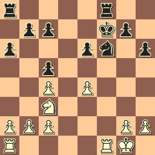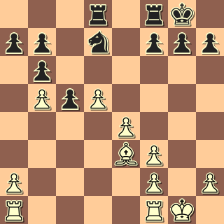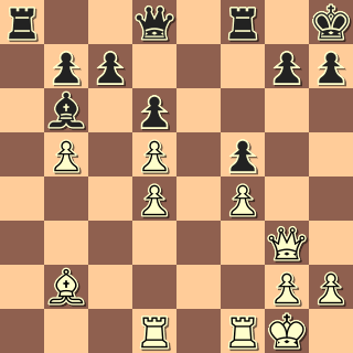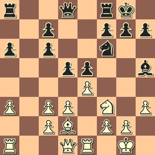 Po zajímavém boji má výhodu černý. Je zřejmé, že zejména pd4 určuje oběma střelcům jejich roli: bílému smutnou, černému o poznání lepší. Vojta je však impulzivní hráč, nějaké dlouhé sušení pro něj není. 20. … c5? 21. dxc6 bxc6 22. bxc6 Dc7 23. Vc1 Va2 24. Dc3