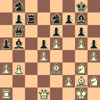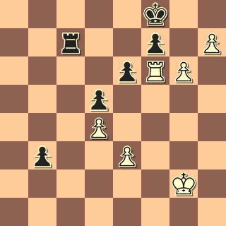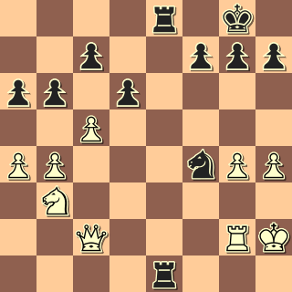 Za přesnost pozice neručím, zápis jsem ztratil, Jb3 a pěšáci jsou bez záruky, ale to je celkem jedno. Láďa před pár tahy ztratil dámu a s krčením rameny („no jo, no“) zkusil ještě pár tahů. Věžka se dostala na první řadu, koník pohrozil … JENŽE: mlžit je třeba s drzým čelem, vzít do hrsti zbývající figury a jít po soupeřovi. Rezignovaně to jen tak zkoušet nestačí. Proto černý po 1. Vd2? nevyužil skvělou možnost, zahrál cosi obyčejného a prohrál. Mohl ovšem partii zcela zvrátit po 1. … V8e3! Mohl. 1:0