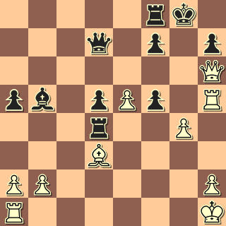 Jako černý jsem tu poztrácel pár pěšců, nechal si svázat věž a za to všechno jsem si přes aktivitu figur ani nevytvořil žádné hrozby. Naštěstí se bílý rozhodl „hrát na jistotu“ a dal 25. Kg2?? Odpověď není tak těžká, ale neříkejte, že by vám neudělala radost: 25. … Dh3+!! Je to černý a leží to v koutě? Volně pohozená dáma! 26. Kxh3 (po ústupu krále matí 26. … Vh4) 26. … Vxg3++ 27. Kh4 Vh3 mat. 0:1