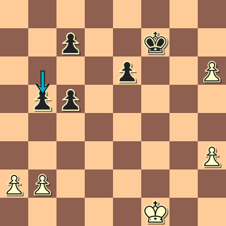 Nyní je třeba ještě najít 36. b3!!, aby se černí pěšci zastavili. Naopak povrchní 36. Ke2?? by ještě prohrálo po 36. … c4!, např. 37. a3 c5 a pokud půjde bílý králem pro e pěšce, uteče mu céčko do dámy.