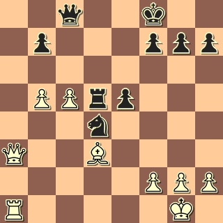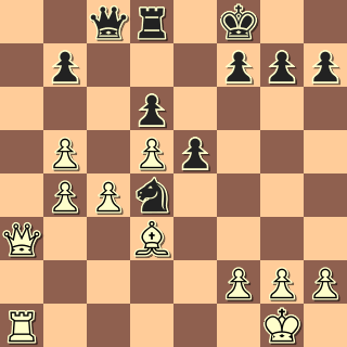 30. c6+ Ke8 31. Da8! Přímočaré, černý nezabrání proměně pěšce. 31. … Dxa8 Nevychází ani 31. … Vd8 32. Dxc8 Vxc8 33. cxb7 Vb8 34. Va8. 32. Vxa8+ Ke7 33. cxb7 Vc5 Poslední léčka. 34. Vc8! Jen ne 34. b8D?? Vc1+ 35. Sf1 Je2+ 🙂 1:0