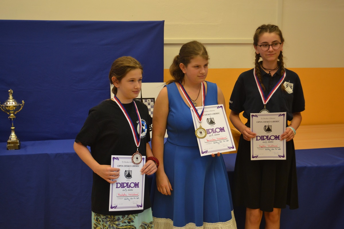 Markétka sehrála s Agátou Huškovou zahájení slušně, ale pak dala koně. Verunku překvapil maličký Václav Finěk (nar. 2010!), po zahájení se zamotala figurama, o jednu přišla a kompenzaci už nezískala.