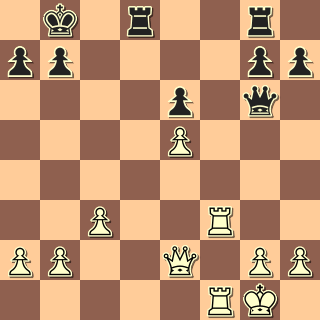 Materiál je téměř rovný, ale rozhodne sedmá řada a aktivita figur. 21. Vf7! Už teď je otázka, co má černý hrát. Snad 21. … Dd3 nebo 21. … Ka8 s dalším Vb8. 21. … a6? 22. Df3! A tady už černému nepomůže vůbec nic, po 22. … Vd5 přijde 23. c4. 22. … Vde8 23. Dxb7 mat. 1:0