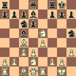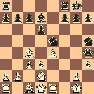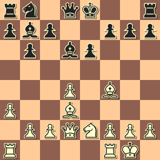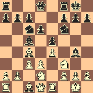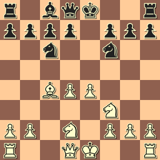 13. Jf3? Co poradit bílému? Docela drželo 13. d4 Jxc4 14. Jxc4, ale aktivitu má černý, např. 14. … f5. 13. … Jxf3+ 14. gxf3 Dámou brát nelze, na e1 visí věž. 14. … Dg3+ 15. Kf1 Sxh3+ (15. … Dh2!! -+) 16. Ke2 Jf4+?! (16. … Sg2!) 17. Sxf4 Dxf4 18. Vh1? Sg2 19. Vg1? Sxf3+ 20. Ke1 Sxd1 Bílý to tahal ještě přes dvacet tahů, ale zcela marně. 0:1