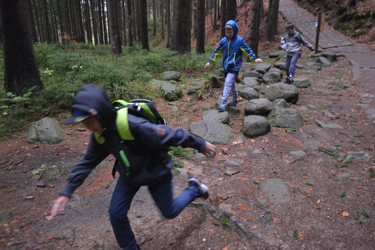 O zpestření cesty se postarala Markétka, která si vzala polorozpadlé boty, ty se jí záhy rozpadly úplně, taže pak po kamenech kulhala obutá neobutá, bez podrážky a zase s nouzově nasazenou podrážkou, Vojta jí to nouzově spravil nějakým provázkem, ale prsty jí lezly i tak. A pak začala, že jí bolí nohy …