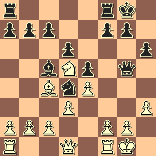 Černý má vyvinutou dámu a ještě tempo k dobru, aby vyhnal centralizovaného jezdce: 1. … c6 2. f4?? Odkrývat diagonálu černému střelci, aby dostřelil na bílého krále, nemůže být dobré. 2. … Dg3!? Tomáš už vidí matový závěr. Spolehlivé bylo 2. … exf4 3. Jxf4 Je2+ a 4. … Jxf4. 3. Jc3?? Jedinou šancí bylo 3. Je7+! Kh7 4. Kh1!, ale i tam má černý 4. … d5 a obě bílé figury jsou opět napadeny. 3. … Jf3+! Účinný dvojšach! 4. Kh1 Dh2 mat.