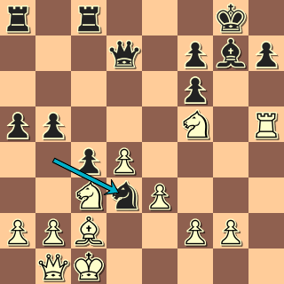 23. Jd5? Třetí nepřesnost v řadě vede ihned k porážce. Lepší 23. Je4 by krylo pf2, takže by černý nejspíš musel do koncovky dámy proti věži a jezdci 23. … Vc2+ 24. Kxd3 Vac8 25. Jxg7 Kxg7 26. Dxc2 Vxc2 27. Kxc2, kde 27. … Da4+ získá pa2 a černý si vytvoří volňáka. V partii to ovšem bude rychlejší a jednoznačnější: 23. … Vc2+ (proč ne 23. … Dxd5, děti?) 24. Kxd3?! (24. Kd1, ne však 24. Ke1?? d2+) 24. … Vxf2 25. Jde7+ Kf8 26. Dc1 (nebo 26. De1 Vxg2)