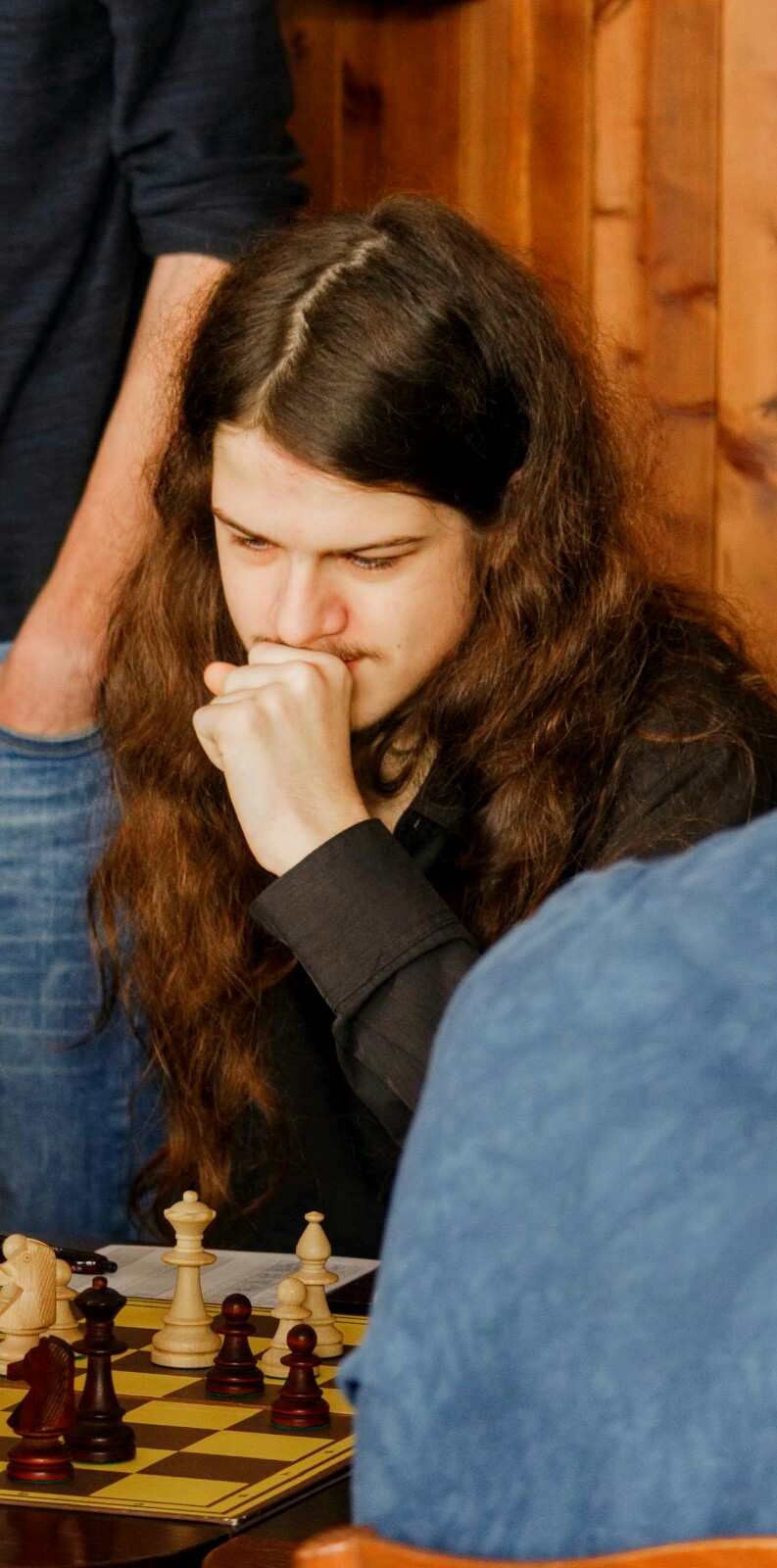 Pak jsem asi vyhrál na dvojce . Roušar sehrál bílými zahájení bez větších ambicí a už kolem 12.-13. tahu spotřeboval spoustu času na hledání plánu, který tam nebyl. Na zbytek partie mu zbylo dvacet minut. Udržoval jsem proto malé plus, nebál jsem se zostření hry, soupeř si ve snaze o aktivitu nechal chytit figuru, ale místo útoku podlehl mé protihře. 4:1