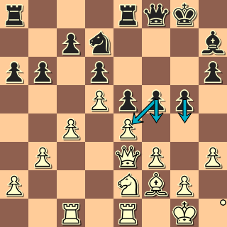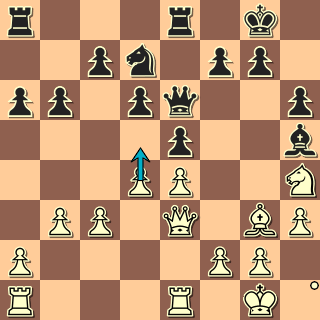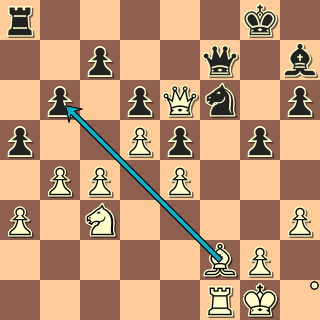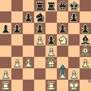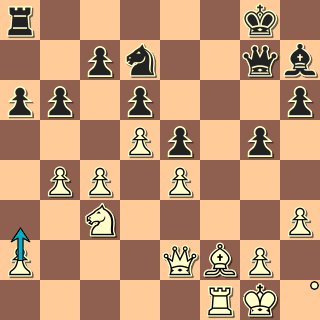 37. a3 Proto vyčkávají tah, který nic nekazí a počítá s dalším tahem černého. a5 38. Qg4! Není to nejlepší tah, ale vytváří hrozby. Nf6?! 39. Qe6+ Qf7 40. Bxb6!