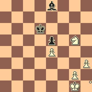 Bg6 59. Kf2 Ke7 60. Ke3 Kf6 61. Nf3 Bf7 62. h4 Bh5 63. Nh2 Bf7 64. g4 Ke6 65. Nf3 Kf6 66. Ng5 Bg8 67. Nf3 Bf7 68. g5+ Ke6 69. Kf2 Bg6 70. Nd2 Bh5 71. Kg3 Be2 Černý se pokusil o jakous takous pevnost, ale času jsem měl pořád ještě dost (asi 10 minut díky odblicanému zahájení!), takže nebyl problém najít finální vylepšení figurek. 72. Kf2 Bh5 73. Ke3 Bg6 74. Nf1 Bh5 75. Ng3 Bg6 76. h5 Bf7 77. Kf3 Bg8 78. Kg4 Bh7 79. g6 Bg8 80. Kg5 a černý vzdal.