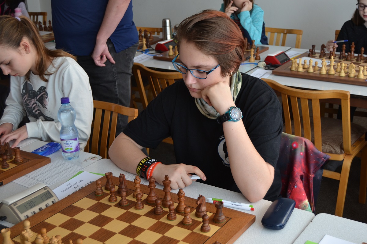 Soňa proti třetí nasazené Vavřínkové hýřila aktivitou, ale v pozici s těžkými figurami doplatila na slabého krále. Verunka to proti své spolubydlící Lucii Vaňharové postavila slušně a soupeřka jí nechala stát figuru.