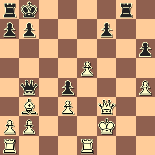 Bílý král je odhalen, ale černý nemá kompenzaci za figuru, zejména kvůli ucpané věži a8. („Jak říkal pan Němec – já tu áčkovou věž nemám rád!“) 1. … Dd2+ 2. De2? Po 2. Ve2 by byl bílý v pohodě. 2. … Df4+ 3. Df3 Dh2+ 4. Kf1 Ani odevzdání dámy nic neřeší. 4. … Vg1 mat.