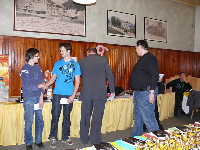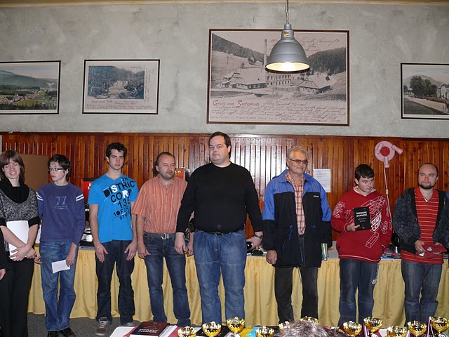 Já jsem měl při pohledu okolo sebe značný respekt, ti mladí blicají s jistotou starých mazáků, s určitou klikou jsem ale procházel turnajem dobře, 8/11 znamenalo krásné 6. místo před spoustou favoritů a cenu 300,- Kč, takže přes placení startovného třem hráčům jsem zůstal nakonec v plusu ;-). Zejména mladíky z Hořic jsem porazil stoprocentně, i když v průběhu partií mě přehrávali.