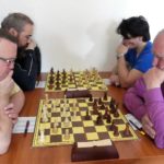 Letmo něco o béčku: to nakonec nastoupilo jen v sedmi a bez řady opor, proti nim nadupané Zaječice (Vařejčko i Jedlička museli odehrát druhou partii), přesto se schylovalo k překvapení. Senzačně a rychle vyhrál Tomáš Mastný nad Konrádem (na tu partii jsem zvědav), Jirka Píše jasně ve věžovce přehrál Jelínka a Vojta dokázal ve svém bleskovém tempu Luboše Jedličku nejen ubránit, ale ještě partii otočil! A i další naši (Jániš, Verča Šmajzrová a Kylar) drželi proti silným soupeřům dlouhé partie, byl to urputný zápas, pět (nebo šest?) partií dlouho přes kontrolu.