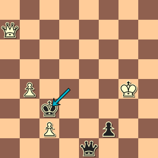 Nejenže černý vede o kvalitu, ale napadá věž i bělopolného střelce, staví dámu, Se1 je mrtvola, královské křídlo je beznadějně blokované. Věřili byste, že bílý dá za devět tahů mat?