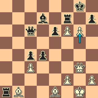 Hazard na visutém laně pokračuje. Černý je psychologicky v nelehké situaci. 32. … Vxf6?? (32. … hxg6 33. Dxg6+ Kf8; elementary, dear Watson!) 33. gxh7+ Kf7 34. h8D Ke7 35. Dhg7+ Vf7? 36. D3g5+ Kd6? 37. D7e5 mat.