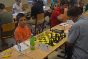Vojta hrál proti Wuenschovi (2059). kterého jsem před pár koly porazil, měl pěšce a zajímavou taktickou hru. Pak se bohužel zaběhl dámou a ztratil figuru, ale měl za ni pár pěšců a v koncovce věčňák dámou.