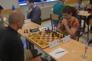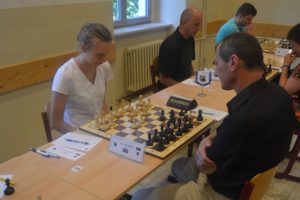 Jen doplním, že první nedělní Domčin soupeř ELO měl 1554, ale nahlásil se jako neregistrovaný a pořadatelé to zjistili až dodatečně. A druhou nedělní partii bych hrál asi spíš raději za černého, každopádně Domču omilostnil, vymyslela krásnou kombinaci, na jejímž konci měla skončit bez figury, naštěstí to neviděl ani jeden :-). Tak se jí aspoň vrátilo to přehlédnutí ze včerejška. Kdyby tak někdo doma dělal diagramy 😀
