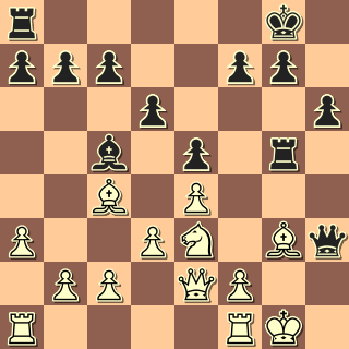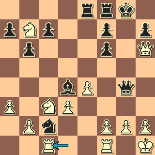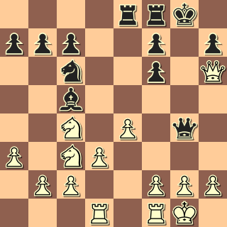 13. … Jf2+!! Ještě lepší bylo 13. … Jxg3+!! 14. hxg3 Vxe1+ 15. Kh2 Vb8. 14. Kg1 Vxe1+ 15. Kxf2 Vfe8 atd. 0:1