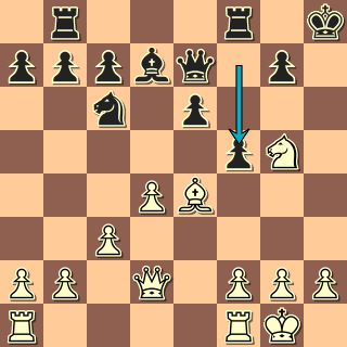 Dva pěšci jsou dva pěšci a rozbité královské křídlo je taky problém, ale to ještě na zadnějších šachovnicích není nic, co by se nedalo zvrátit. 1. … Jd4 2. Kh1? Vždyť nic nehrozilo. Ani jeden z hráčů v této fázi nevidí mohutné Jd5! 2. … Jxc2? 3. Ja5? b6 4. Jb7? „Aktivizace“ jezdce je pouze pro silné povahy. 4. … Sd4 Bílý jezdec je chycen … ale černý taky, např. po 5. Dd2. 5. Vc1