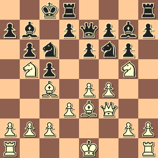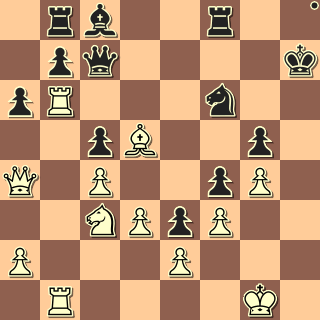 Oba mají krále v centru, ale rozdíl v aktivitě figur je obrovský (iniciativa!), je spíš zázrak, že po jediném 24. Dh3 by se bílý ještě držel. Ale po 24. a3? Jf3+! je konec, bílý si musí vlézt do odtahu a po 25. Ke2/Kd1 Jxh2+ ztratí dámu. 0:1
