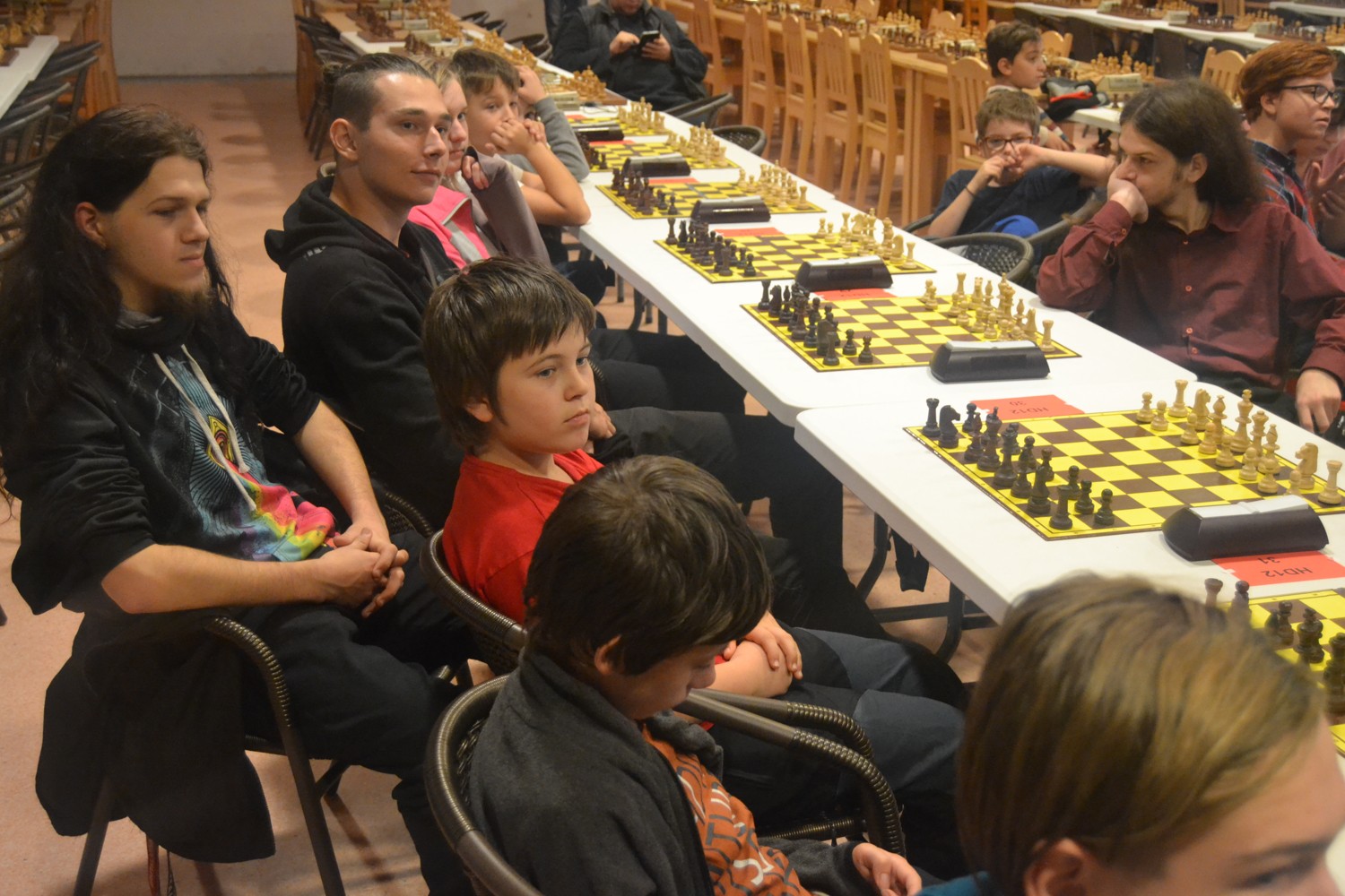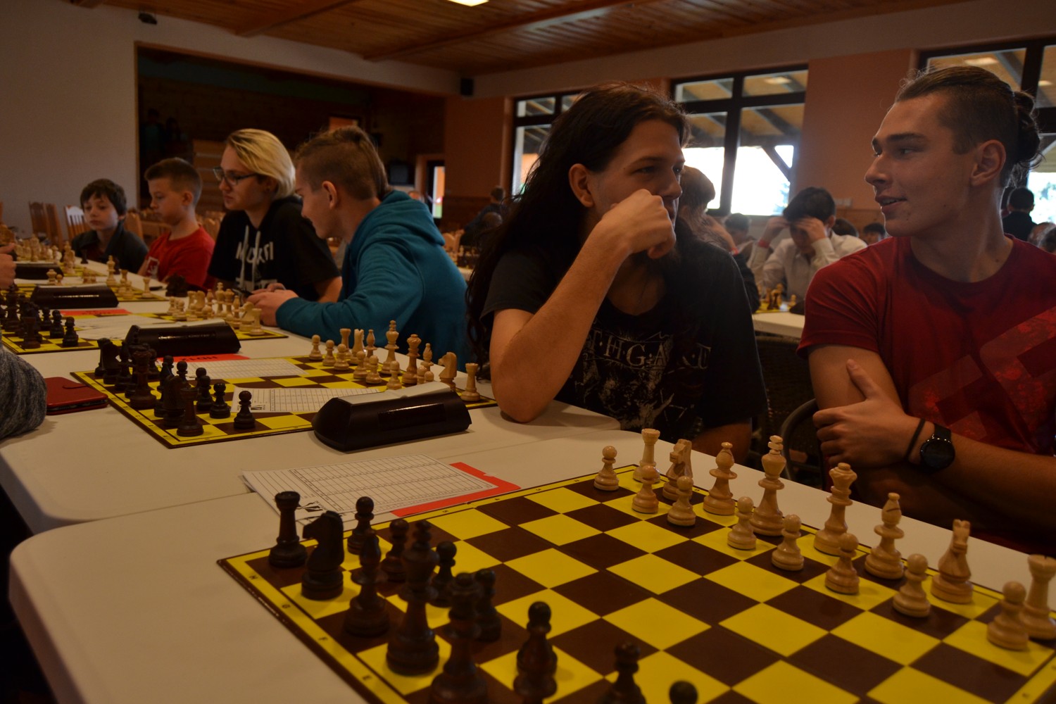 No a ty turnaje. Mistrovské kategorie hrají jen Michal a Soňa (oba U16). FIDE open já, Vojta a Jirka, který přijal nabídku zahrát si jako poslední sudý hráč (Vítek to odmítl a zkusí si vydělat nějaké peníze v Národním). Národní open všichni ostatní, tedy Vítek, Verunka, Matěj, Adam a Tomášové.