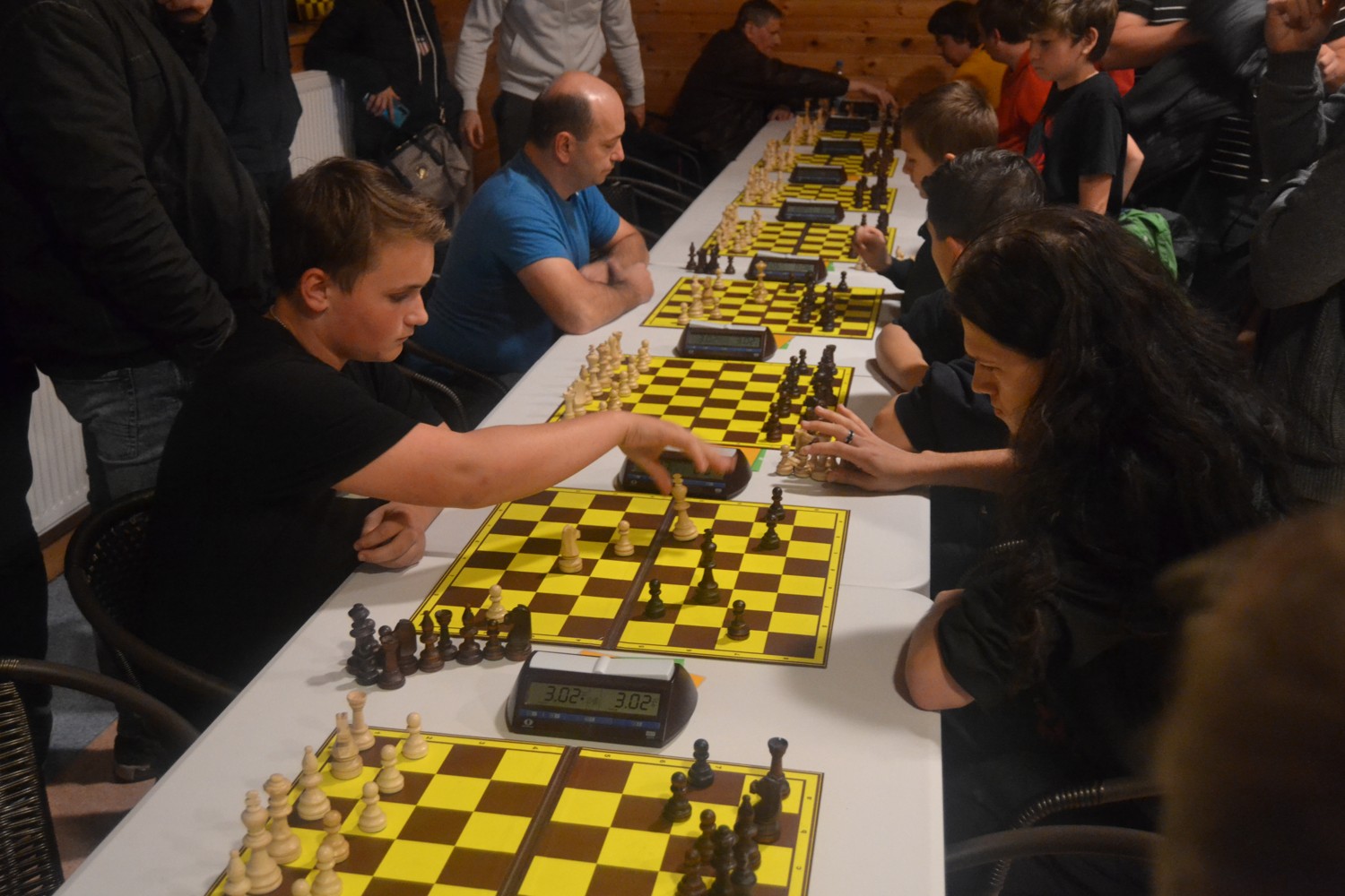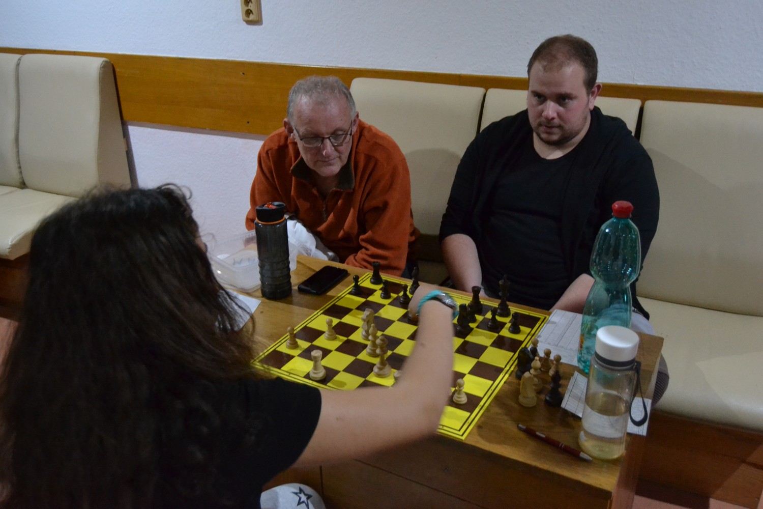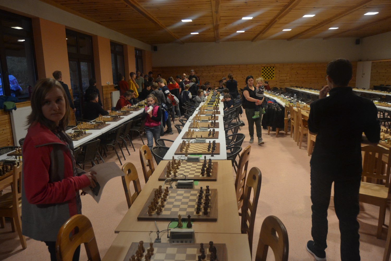 Do toho rozpaky z ubytování. Letos turnaj šíleně podražil, takže abychom se vešli do rozumných čísel, musel jsem objednat šestilůžáky. Tam nejde čekat moc, ale na pokoji je skutečně jen šest postelí, tři malinké noční stolky a minimum místa mezi nimi. Polička na věci, stůl na šachy, židle na sednutí? I toto … V chodbičce skříň s malou poličkou pro každého. Šlapeme po sobě.