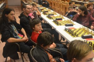 Přednáška Pavla Němce kombinovala historii šachu a pěkné útočné partie, naši vydrželi celé dvě hodiny! Došla řeč i na mat střelcem a jezdcem, na což Vojta upozornil, že je v předstihu, protože jindy bývají motivy z přednášky k vidění až v dalším kole.