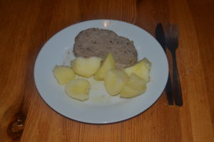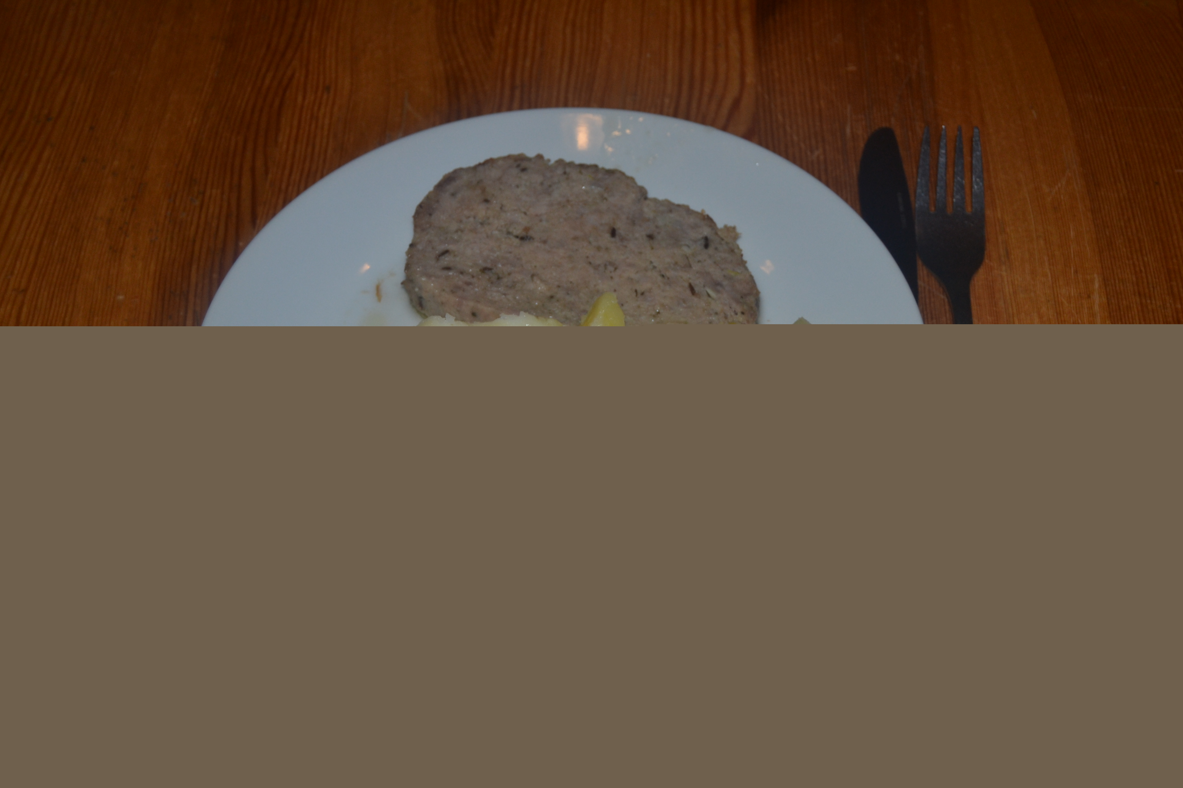 Nejdřív toho musím využít k propagaci nezapomenutelného hotelu Kořínek, všichni si sem naplánujte dovolenou. Na obrázku je celá večeře v ceně 90 Kč (plátek sekané a pár kousků bramboru).