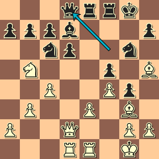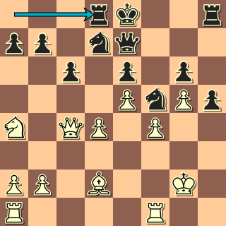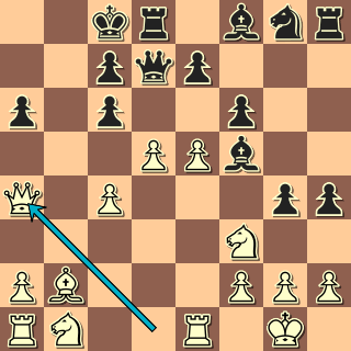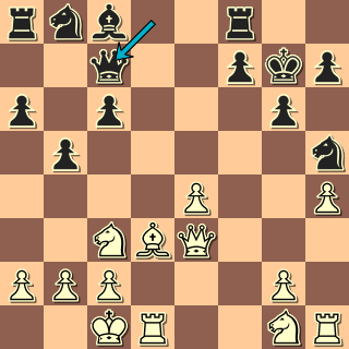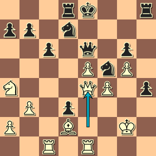 Dámské křídlo je prostřenou pastvinou! Nelze 14. … gxf3? 15. Dxa6+ Kb8 16. Ve3. 14. … Kb7 15. Ve3 c5 16. Vb3+ Ka7 17. Da5 e6
